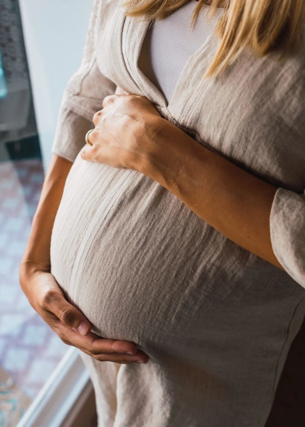Hidden Breastfeeding Panel Maternity-Nursing Nightgown & Robe Set Beige - 17408