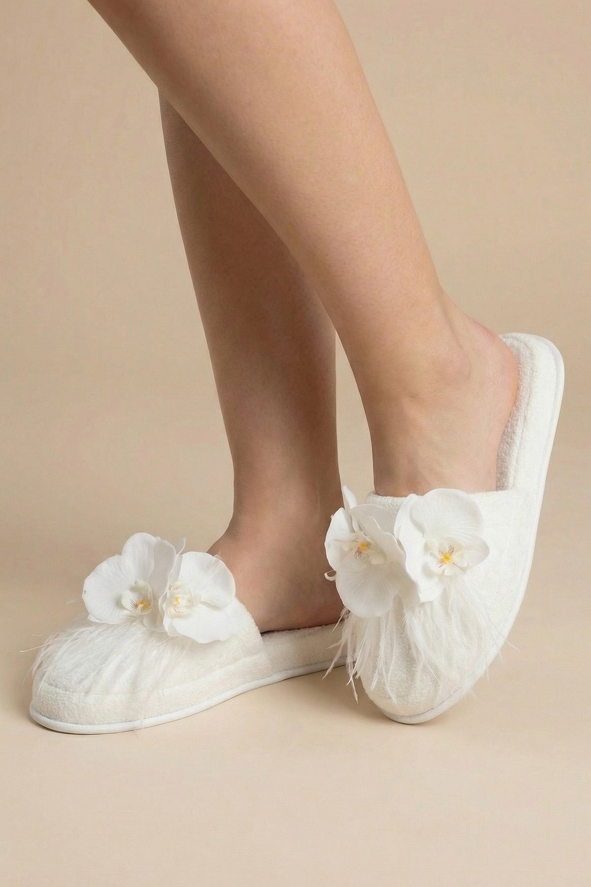 White Orchid Themed Postpartum And Bride Crown & Slippers Set White - 919511S